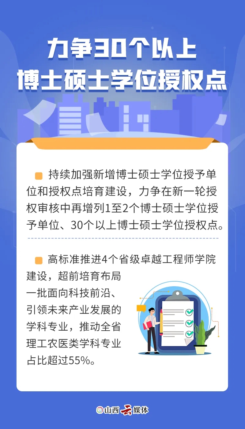 二是聚焦教育科技人才一體發(fā)展,深入推進實施百億工程,持續(xù)優(yōu)化高校布局結(jié)構(gòu),加快調(diào)整學(xué)科專業(yè),系統(tǒng)推進高校科技創(chuàng)新,著力構(gòu)建現(xiàn)代職業(yè)教育體系,多措并舉促進高校畢業(yè)生就業(yè)創(chuàng)業(yè),在支撐全省全方位轉(zhuǎn)型上展現(xiàn)更大作為。