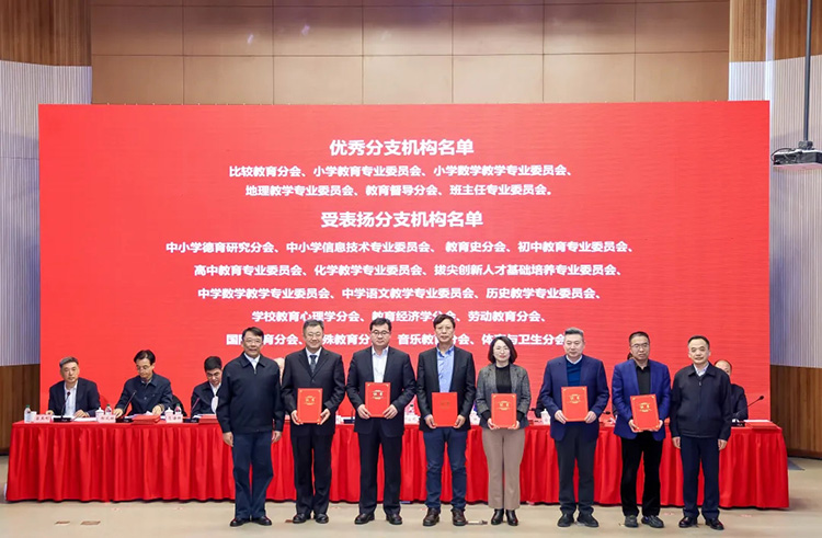 會(huì)上,公布了中國(guó)教育學(xué)會(huì)2024年度優(yōu)秀分支機(jī)構(gòu)名單。楊銀付宣讀了《中國(guó)教育學(xué)會(huì)關(guān)于公布2024年度優(yōu)秀分支機(jī)構(gòu)的決定》。經(jīng)學(xué)會(huì)考核委員會(huì)集體評(píng)審,學(xué)會(huì)比較教育分會(huì)、小學(xué)教育專業(yè)委員會(huì)、小學(xué)數(shù)學(xué)教學(xué)專業(yè)委員會(huì)、地理教學(xué)專業(yè)委員會(huì)、教育督導(dǎo)分會(huì)、班主任專業(yè)委員會(huì)等6個(gè)分支機(jī)構(gòu)被評(píng)定為“優(yōu)秀分支機(jī)構(gòu)”,并對(duì)在方向引領(lǐng)、品牌建設(shè)、規(guī)范管理、隊(duì)伍建設(shè)、學(xué)術(shù)成果、服務(wù)質(zhì)量等方面表現(xiàn)比較突出的17個(gè)分支機(jī)構(gòu)予以表?yè)P(yáng)。中國(guó)教育學(xué)會(huì)會(huì)長(zhǎng)朱之文、顧問(wèn)鄭富芝共同為學(xué)會(huì)2024年度優(yōu)秀分支機(jī)構(gòu)頒發(fā)證書。