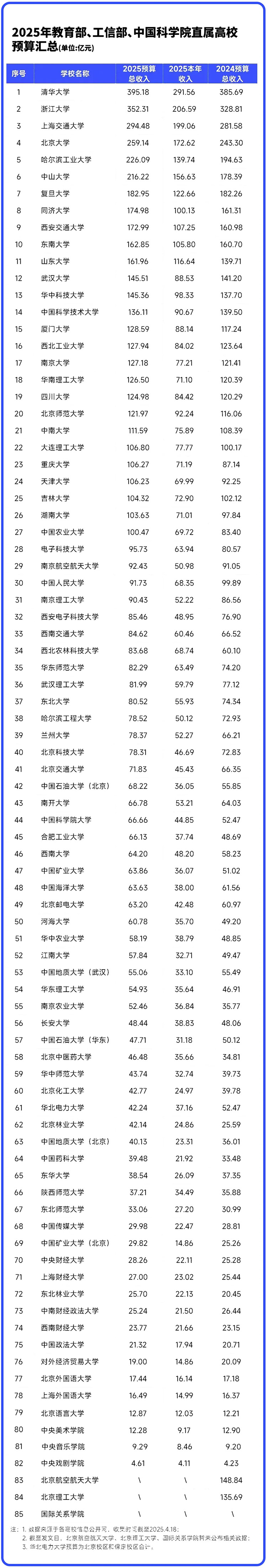 4月18日,教育部、工信部、中國(guó)科學(xué)院直屬高校陸續(xù)在其信息公開網(wǎng)公布了2025年部門預(yù)算。