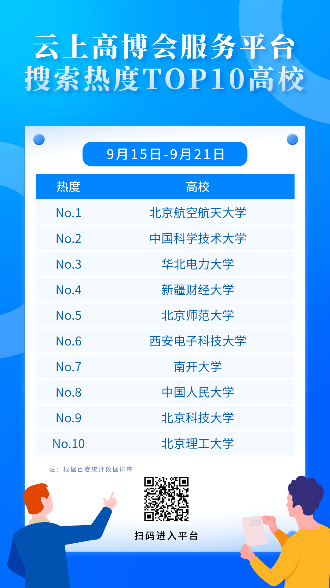 云上高博會(huì)服務(wù)平臺(tái)將按周推出搜索熱榜,為高等教育領(lǐng)域及相關(guān)行業(yè)人士提供參考信息。同時(shí),期待更多的企業(yè)和高校入駐平臺(tái),搶占展示C位,傳播品牌價(jià)值及優(yōu)秀成果,賦能校企合作。