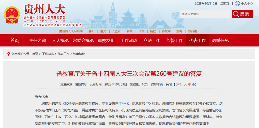 再次感謝您提出的寶貴建議。我們將以此為契機(jī),進(jìn)一步加大工作力度,加快推動(dòng)貴州高等教育提質(zhì)增效,為貴州新型工業(yè)化、信息化發(fā)展提供堅(jiān)實(shí)的人才保障和智力支撐。