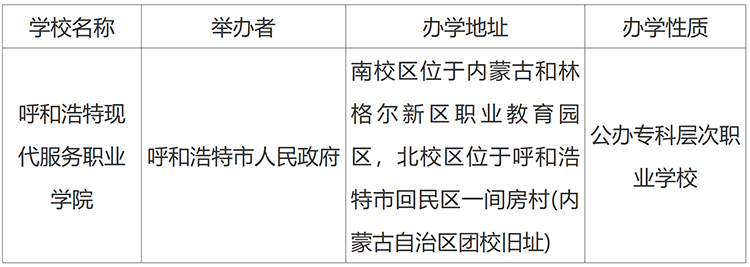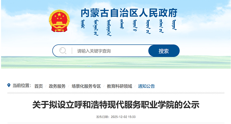 12月2日,內(nèi)蒙古自治區(qū)教育廳發(fā)布《關(guān)于擬設(shè)立呼和浩特現(xiàn)代服務(wù)職業(yè)學(xué)院的公示》。