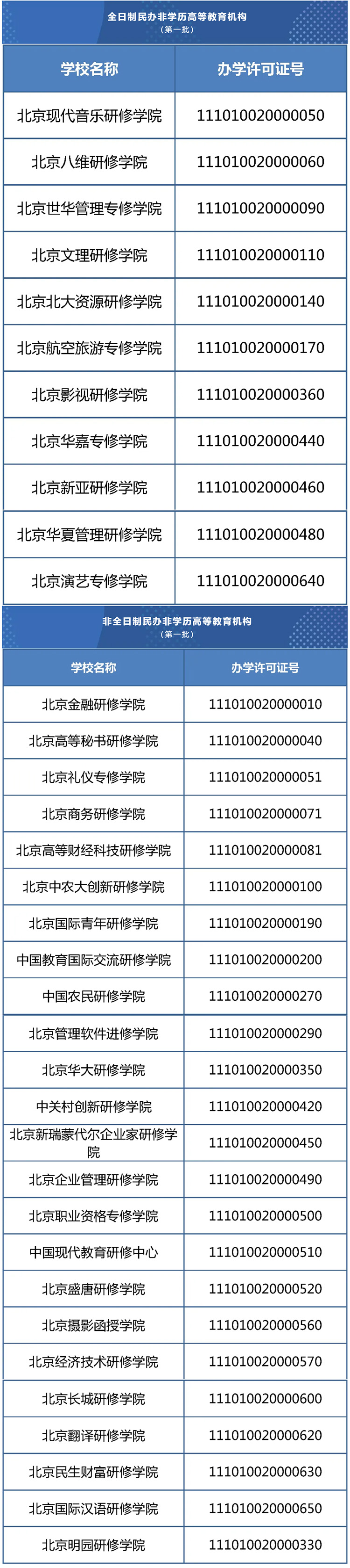 首批35所民辦非學(xué)歷高等教育機(jī)構(gòu)獲批招生,包括11所全日制機(jī)構(gòu)、24所非全日制機(jī)構(gòu)。另有3所學(xué)校(北京應(yīng)用技術(shù)專(zhuān)修學(xué)院、北京機(jī)械工程師進(jìn)修學(xué)院、北京當(dāng)代藝術(shù)研修學(xué)院)未通過(guò)年檢,將停止招生并進(jìn)行整改。