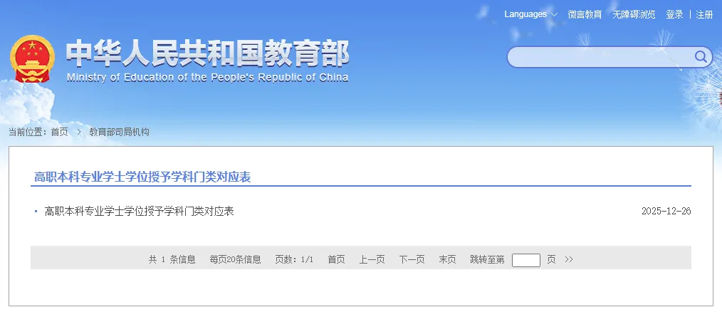 近日,教育部官網(wǎng)更新《高職本科專業(yè)學(xué)士學(xué)位授予學(xué)科門類對(duì)應(yīng)表》。