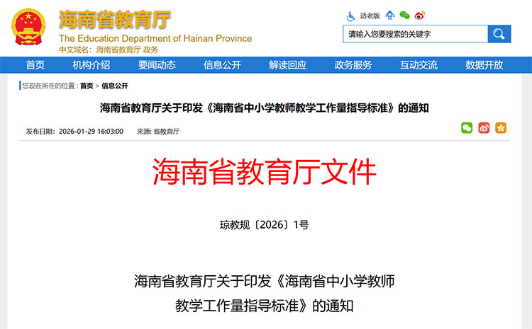 近日,海南省教育廳印發(fā)《海南省中小學(xué)教師教學(xué)工作量指導(dǎo)標(biāo)準(zhǔn)》(以下簡稱《指導(dǎo)標(biāo)準(zhǔn)》),進(jìn)一步規(guī)范課時(shí)基準(zhǔn),保障開齊開足課程。