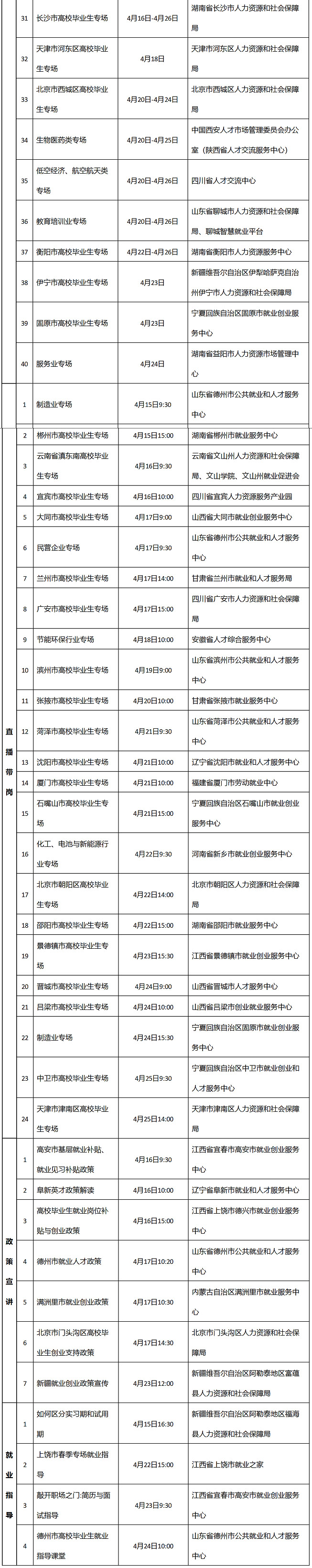 職引未來——2026年全國城市聯(lián)合招聘高校畢業(yè)生春季專場活動啟動以來,人力資源社會保障部組織各地各有關(guān)機(jī)構(gòu)陸續(xù)推出84場面向先進(jìn)制造、醫(yī)療衛(wèi)生、信息技術(shù)、現(xiàn)代服務(wù)、新能源等重點(diǎn)行業(yè)和京津冀、珠三角、成渝地區(qū)等重點(diǎn)區(qū)域的線上線下專場(校園)招聘會,12場跨區(qū)域巡回招聘會,24場直播帶崗,11場政策宣講和就業(yè)指導(dǎo),共計(jì)131場活動,全力為高校畢業(yè)生提供有針對性的多元化就業(yè)服務(wù)支持。