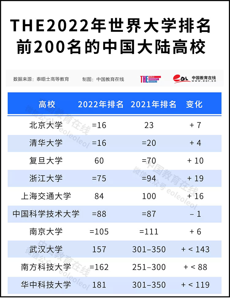 盡管受到全球疫情的影響,但中國大陸高校在泰晤士高等教育世界大學排名中繼續(xù)提升。讓我們一起見證后疫情時代世界的變化,見證中國大陸能否挑戰(zhàn)美國和英國在全球 10 強中的長期領(lǐng)先地位,這將是一件非常有趣的事情。
