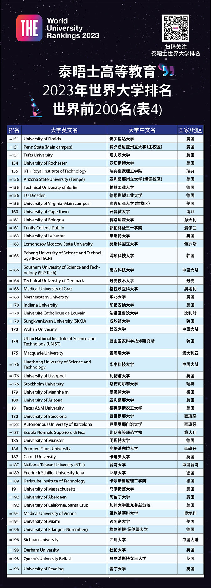 2023年的排名中共有來自104個國家/地區(qū)的1799所大學(xué)上榜,較去年增加了137所,創(chuàng)歷史新高。