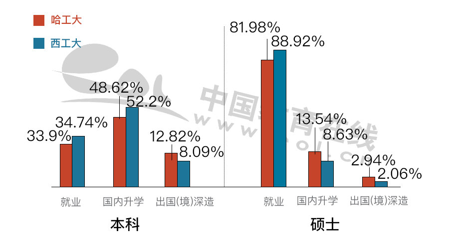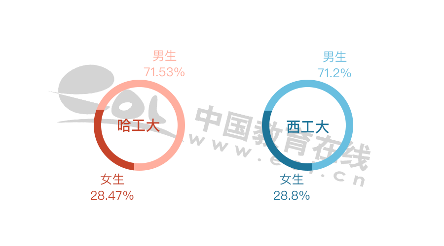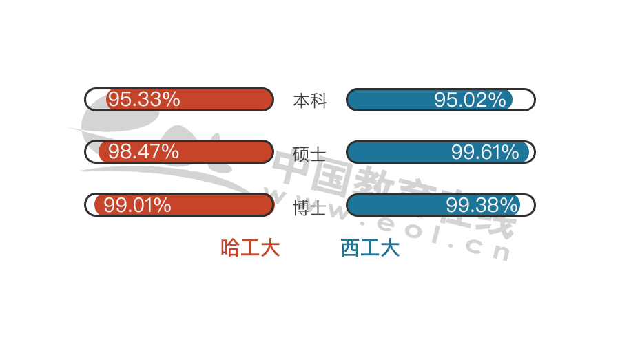 哈工大和西工大各個(gè)學(xué)歷畢業(yè)生比例基本相同。