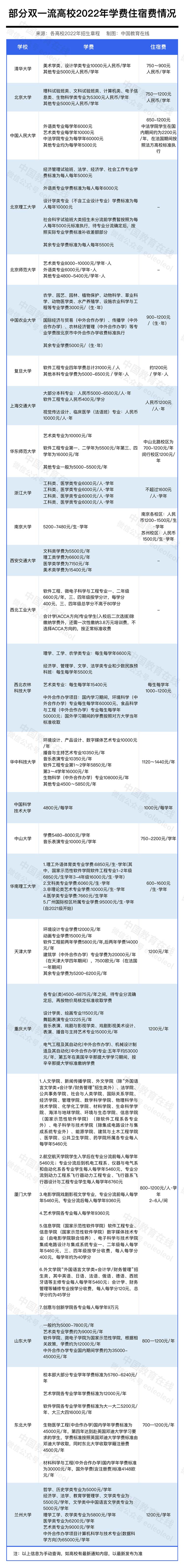 從中國教育在線統(tǒng)計的部分“雙一流”高校2022年學(xué)費情況來看,最低的是中國農(nóng)業(yè)大學(xué)農(nóng)學(xué)相關(guān)專業(yè),學(xué)費僅3000元每學(xué)年,這個數(shù)字基本已經(jīng)低于大部分高中的學(xué)費了。藝術(shù)類專業(yè)則較其他專業(yè)較高,通常在8000-15000元每年。
