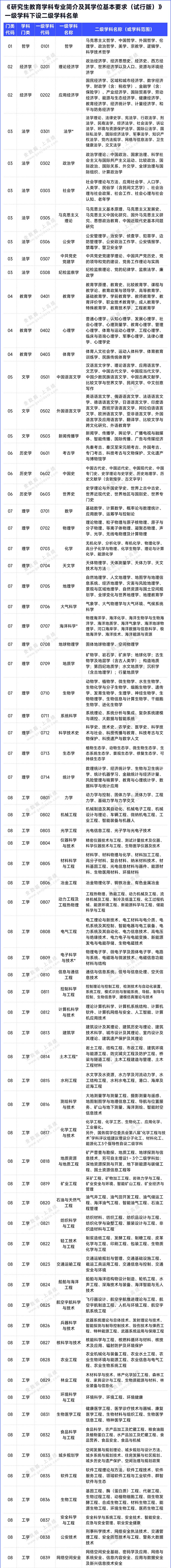 高績整理了該試行版文件中的一級學(xué)科下設(shè)二級學(xué)科名單,僅供參考。