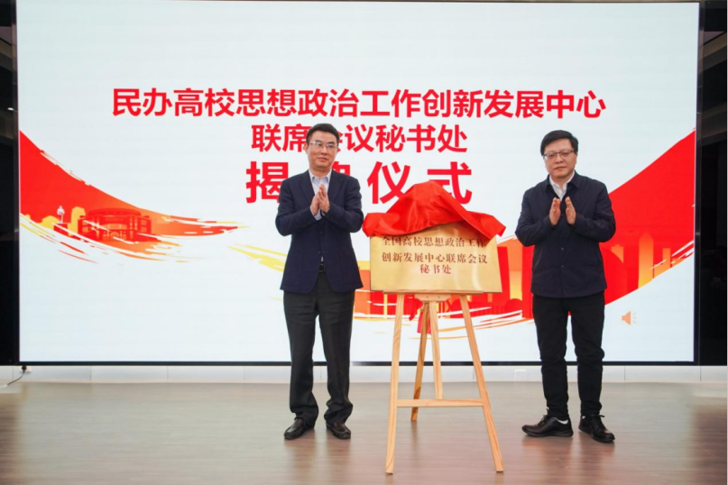 教育部思政司副司長余先亭和上海市教衛(wèi)工作黨委副書記、上海市教委副主任、上海市民辦高校黨工委書記閔輝為民辦高校思政工作創(chuàng)新發(fā)展中心聯(lián)席會議秘書處揭牌