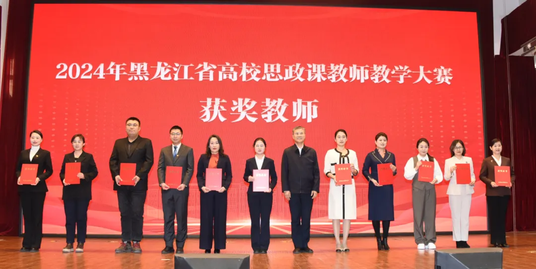 活動中,為5所黑龍江省首批高等職業(yè)學(xué)校特色馬克思主義學(xué)院(思政課教研部)進(jìn)行授牌,為2024年全省高校思政課教師教學(xué)大賽獲獎教師代表和“優(yōu)秀組織獎”獲獎高校頒發(fā)證書和獎牌。