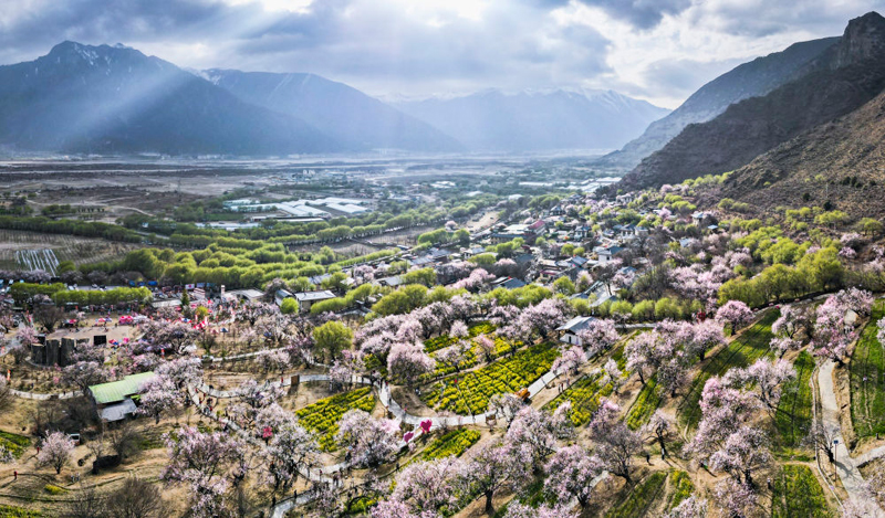這是在西藏林芝市巴宜區(qū)嘎拉村拍攝的桃花(2025年3月29日攝,無人機(jī)全景照片)。(新華社記者 齊芷玥/攝)