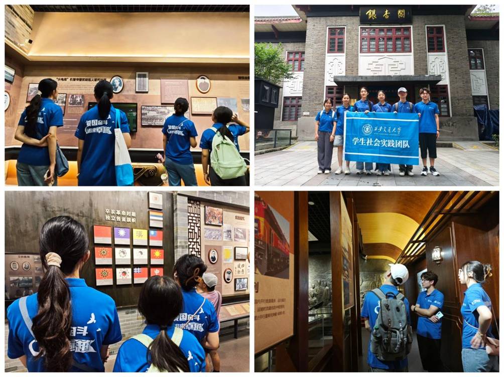 仰豐碑承浩氣,礪新程秉赤忱。保路運(yùn)動作為辛亥革命的導(dǎo)火索,對于加速清王朝滅亡、推翻帝制起到了關(guān)鍵作用,為深入學(xué)習(xí)四川保路運(yùn)動歷史與革命精神。7月22日上午,實踐團(tuán)隊前往四川保路運(yùn)動史事陳列館,邁步越過館前的門檻,隊員們便踏入那段風(fēng)雷激蕩的歲月。館內(nèi)浮雕氣勢恢宏,油畫再現(xiàn)歷史場景,詳實的史料敘述將保路運(yùn)動的艱辛歷程、四川民眾萬眾一心的抗?fàn)幰庵厩逦尸F(xiàn)。特別是矗立的“辛亥秋保路死事紀(jì)念碑”,無聲訴說著川人敢為天下先的勇毅犧牲,成為隊員們心中關(guān)于民族覺醒與國家前行的深刻烙印?!懊恳患奈锒荚谔嵝盐覀儯瑘皂g不屈的意志是民族最珍貴的財富,也是今天攻堅克難的基石?!北R月瑤同學(xué)在參觀后表示。