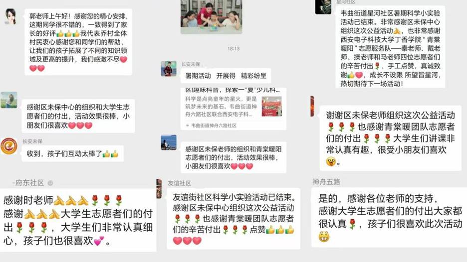 此次實(shí)踐的每一份收獲與成長(zhǎng)都浸潤(rùn)著“青棠暖陽”志愿者辛勤耕耘的汗水。這不僅僅是一次暑期的志愿服務(wù),更是新時(shí)代青年學(xué)子以實(shí)際行動(dòng)響應(yīng)時(shí)代召喚、勇?lián)鐣?huì)責(zé)任的生動(dòng)詮釋。10天的深入社區(qū),12個(gè)實(shí)踐點(diǎn)的傾情投入,16場(chǎng)活動(dòng)的精心澆灌,近100小時(shí)的全情陪伴——數(shù)字背后,是“科普啟智”點(diǎn)燃的思維火花,是“學(xué)業(yè)護(hù)航”傳遞的溫暖力量,是“文化潤(rùn)心”播撒的自信種子。志愿者們將專業(yè)知識(shí)轉(zhuǎn)化為服務(wù)社會(huì)的動(dòng)能,用青春的智慧與熱忱,為社區(qū)孩子們打開了一扇扇探索世界的窗口,點(diǎn)亮了他們對(duì)知識(shí)的好奇、對(duì)學(xué)習(xí)的興趣、對(duì)傳統(tǒng)文化的認(rèn)同、對(duì)科學(xué)探索的向往。同時(shí),“青棠暖陽”實(shí)踐隊(duì)的付出與成效,也贏得了各社區(qū)負(fù)責(zé)人的高度贊譽(yù)。