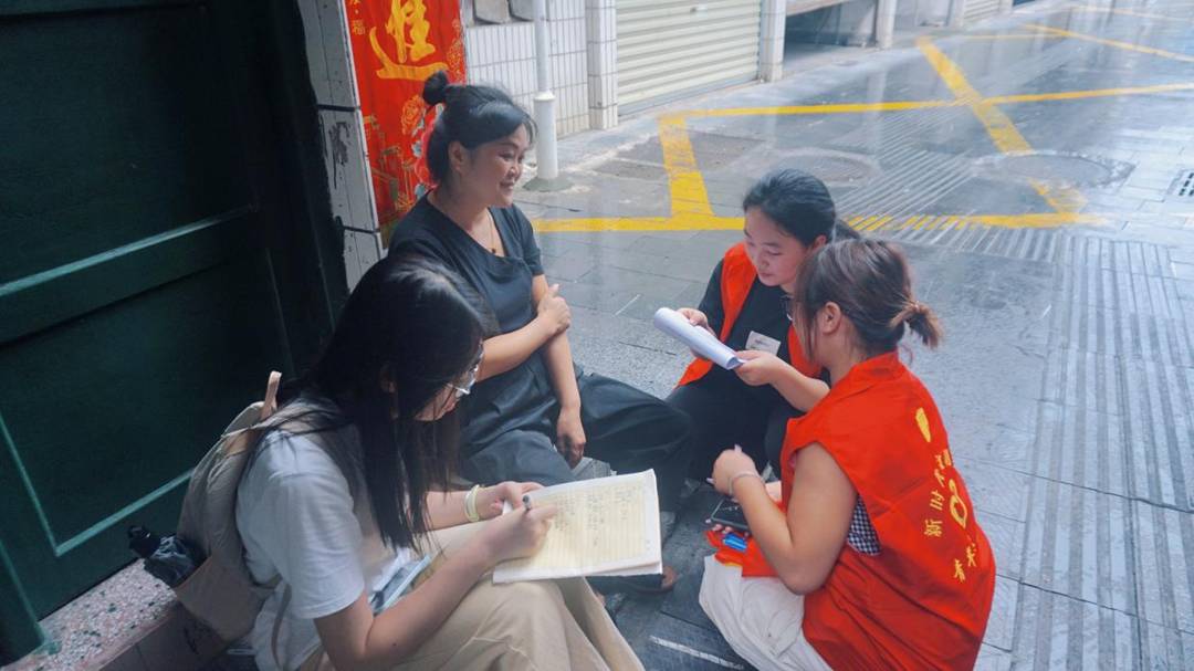 (圖為志愿者正在采訪高興玉 廖肖珠 攝)