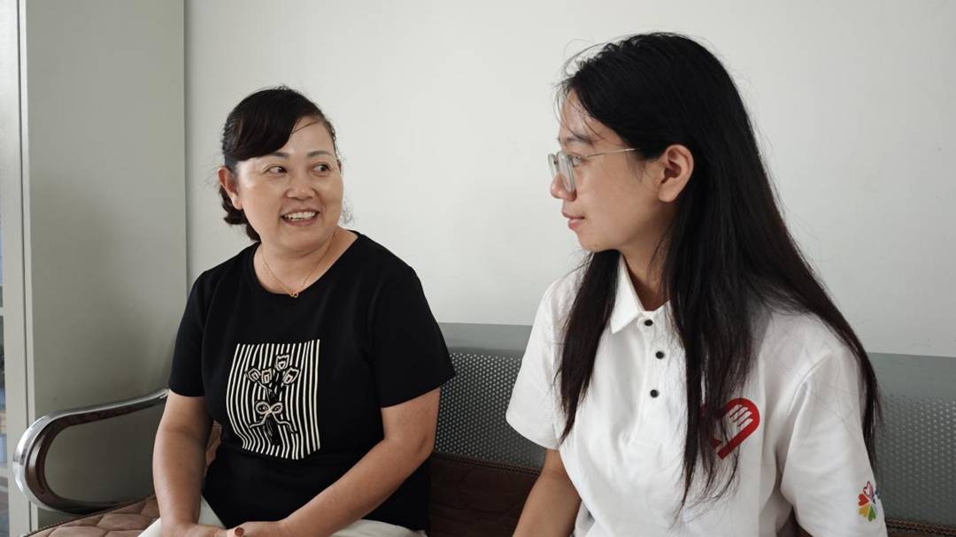(圖為志愿者正在采訪唐阿姨 代玉潔 攝)