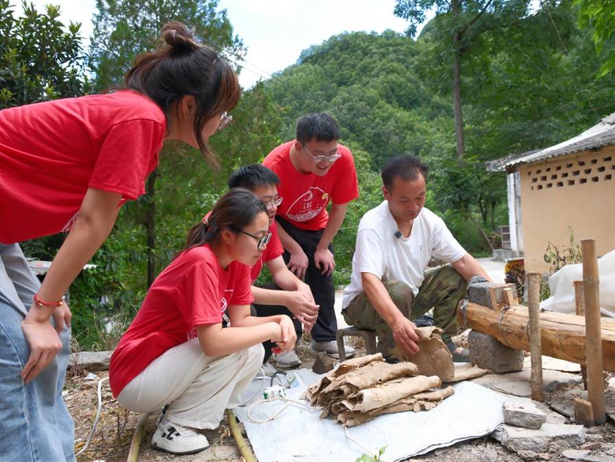 在為期九天八夜的實踐過程中,團隊成員圍繞“非物質(zhì)文化遺產(chǎn)傳承保護”、“青年助力鄉(xiāng)村振興”主題,深入大堡鎮(zhèn)、城關(guān)鎮(zhèn)等地走訪非遺傳承人,親歷古法造紙技藝;開展社區(qū)美育宣講與“非遺體驗課”,引導(dǎo)青少年動手實踐,播撒文化種子;探訪隴南革命根據(jù)地紀念館,感悟紅色精神;調(diào)研甘肅桃源飲品股份有限公司,探尋產(chǎn)業(yè)創(chuàng)新與綠色發(fā)展;參觀康縣博物館農(nóng)耕文明展,觸摸鄉(xiāng)土記憶與歷史文脈。
