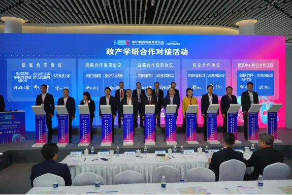 活動促成校地、校企、校校合作項目80余項,現(xiàn)場簽約57項。浙江大學(xué)與吉林省政府簽訂戰(zhàn)略合作協(xié)議,上海交通大學(xué)、同濟(jì)大學(xué)、北京中醫(yī)藥大學(xué)等與長春市政府開展戰(zhàn)略合作。優(yōu)選級華為ICT學(xué)院、天津智慧城市研究院吉林分院齊揭牌。以浙江大學(xué)、吉林大學(xué)、東北大學(xué)等為代表的30余所高校、華為、中國華能、中國一汽、領(lǐng)跑汽車、宇樹科技等為代表的60余家企業(yè)圍繞核心技術(shù)攻關(guān)、重點(diǎn)技術(shù)改造、共建研發(fā)中心等形式開展校企、校校合作。