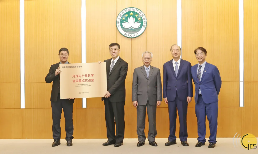 在行政長官岑浩輝見證下,國家科技部部長陰和俊頒授牌匾予澳門科技大學(xué)月球與行星科學(xué)全國重點實驗室。
