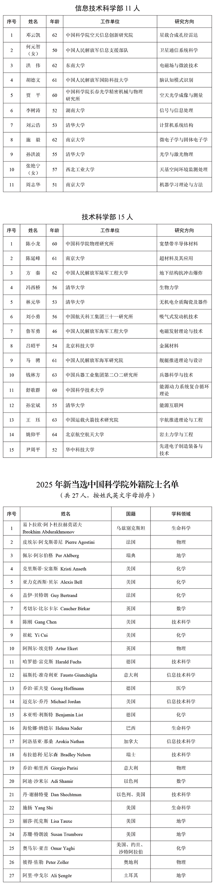2025年中國科學(xué)院院士增選當(dāng)選院士名單