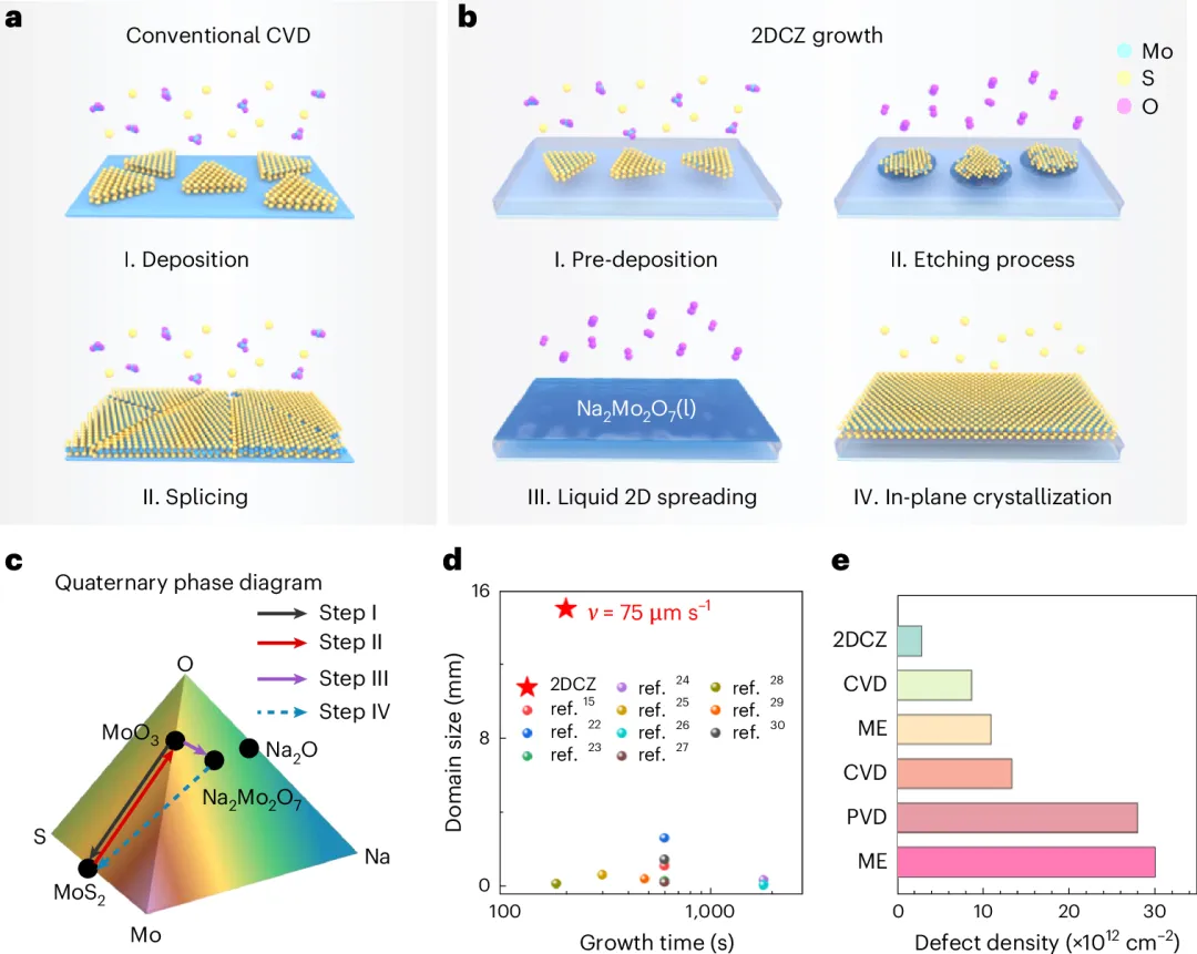 圖1 大尺寸、高質(zhì)量MoS2晶疇的2DCZ結(jié)晶