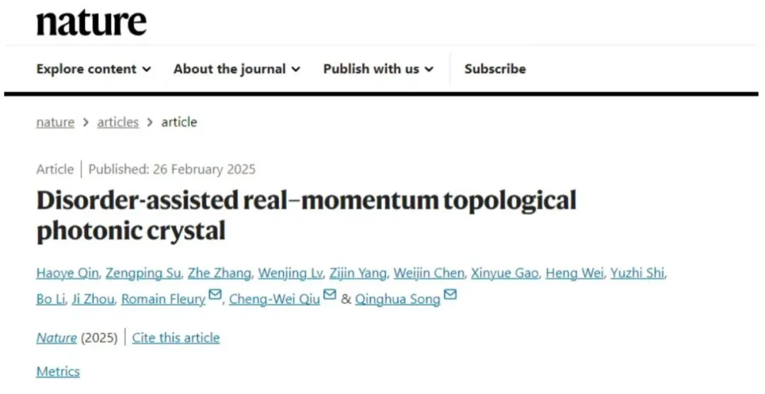 《自然》(Nature)網(wǎng)站論文截圖