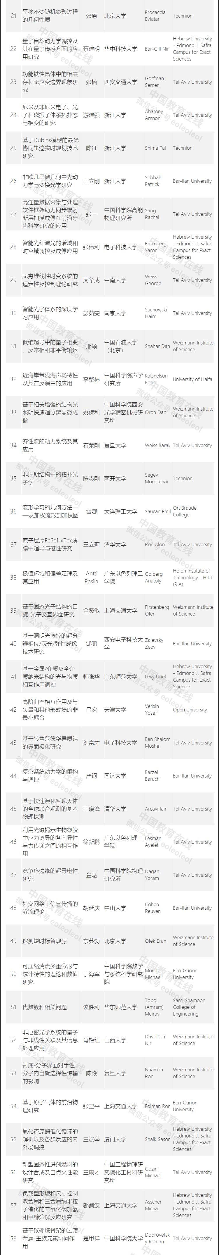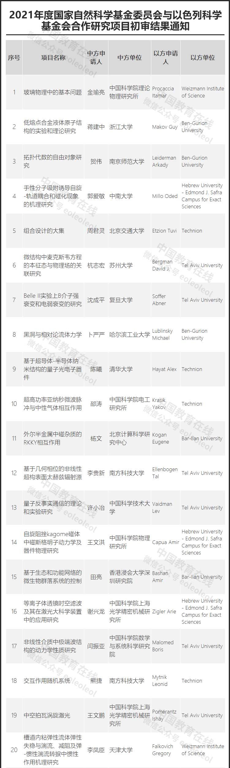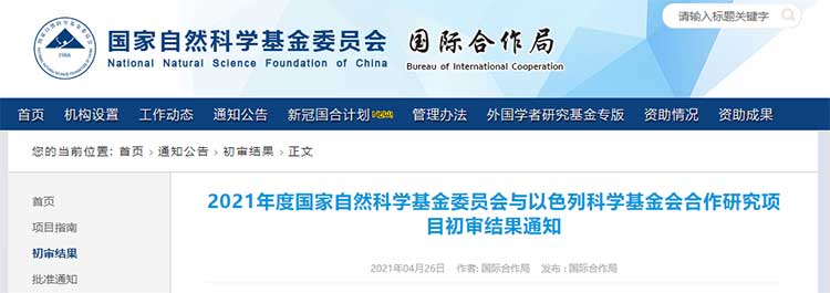 近日,國家自然科學(xué)基金委網(wǎng)站正式公布了2021年度國家自然科學(xué)基金委員會與以色列科學(xué)基金會合作研究項目初審結(jié)果,共188個項目通過初審。