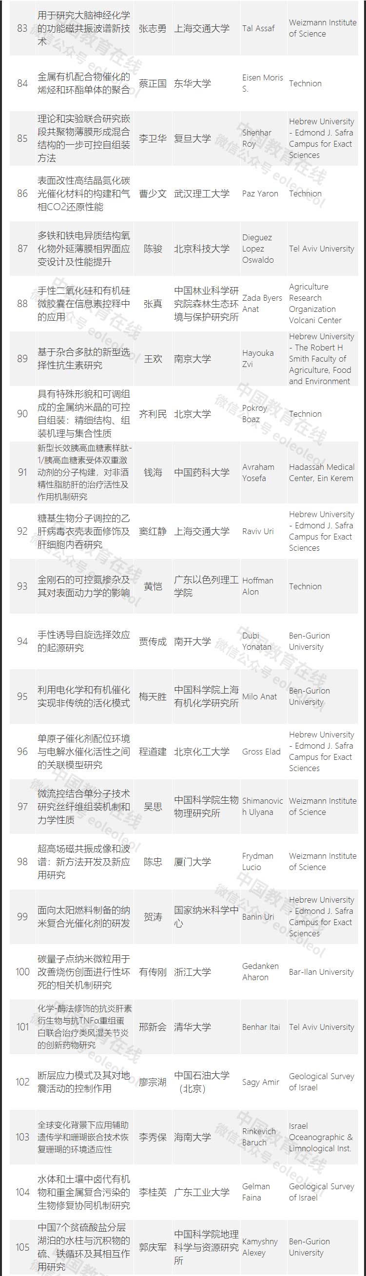 據(jù)悉,根據(jù)國家自然科學(xué)基金委員會(NSFC)與以色列科學(xué)基金會(ISF)于2007年10月簽署的合作備忘錄和之后達(dá)成的合作共識,2021年雙方將繼續(xù)共同資助合作研究項目,支持兩國科學(xué)家開展實質(zhì)性的創(chuàng)新研究與合作。申請人可在數(shù)學(xué)、物理、化學(xué)、地球科學(xué)、納米科技、計算機(jī)科學(xué)內(nèi)自主選題,開展創(chuàng)新性科學(xué)研究合作。資助計劃為35項左右,NSFC資助直接費用不超過200萬元/項,包括研究經(jīng)費和合作交流經(jīng)費等。ISF向以方科學(xué)家提供對等資助經(jīng)費。資助期限為3年。
