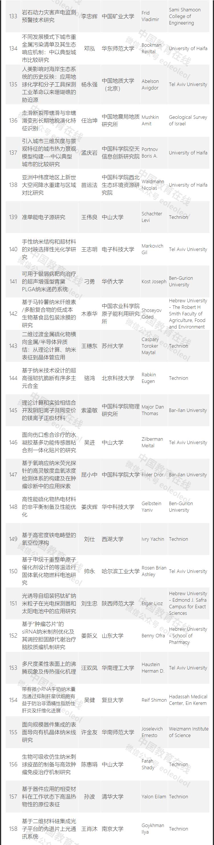 經(jīng)過公開征集,共收到中以(NSFC-ISF)合作研究項目申請194項。經(jīng)初步審查并與以方核對清單,確定有效申請188項。