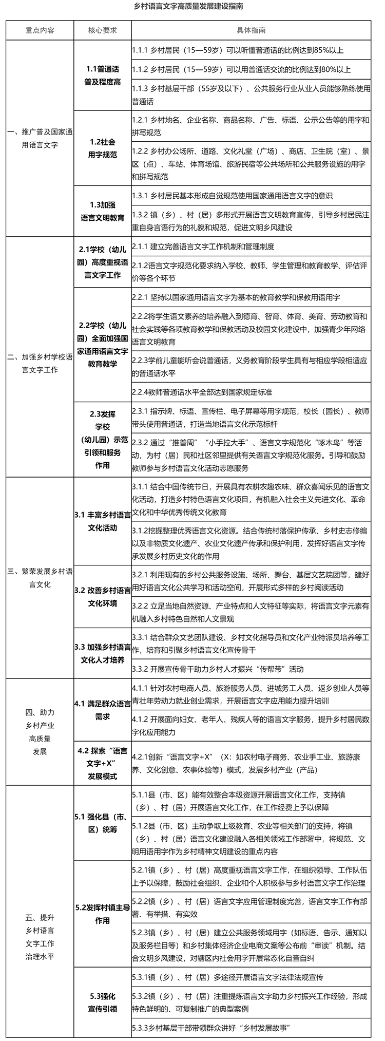 為深入學習貫徹習近平新時代中國特色社會主義思想,貫徹落實黨的二十大和二十屆二中、三中全會精神及全國教育大會精神,落實《教育強國建設規(guī)劃綱要(2024—2035年)》關于實施國家通用語言文字普及攻堅和質量提升行動要求,學習運用“千村示范、萬村整治”工程經驗,引導鄉(xiāng)村規(guī)范使用國家通用語言文字、提高人民群眾語言文化素養(yǎng)、繁榮發(fā)展鄉(xiāng)村語言文化、賦能鄉(xiāng)村產業(yè)發(fā)展,教育部、農業(yè)農村部聯(lián)合研究制定了《鄉(xiāng)村語言文字高質量發(fā)展建設指南》(以下簡稱《指南》),現(xiàn)印發(fā)給你們。有關工作要求如下。